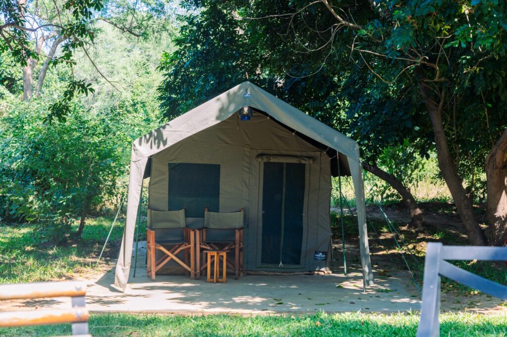 Camp 1 is ideal for families and groups wanting space to spread out and a relaxed central hub with river views. The camp sleeps up to 12 guests in a mix of chalets and tents, all set close to the water and a splash pool for cooling off between game viewing and braais.