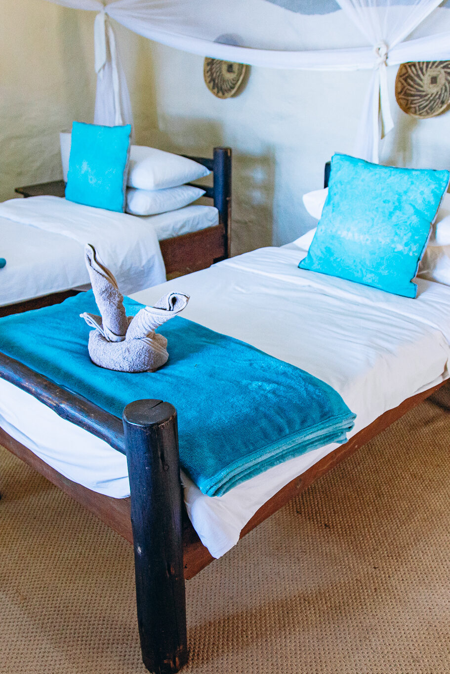 - Accommodation in chalets or safari tents with beds, linen and towels.
